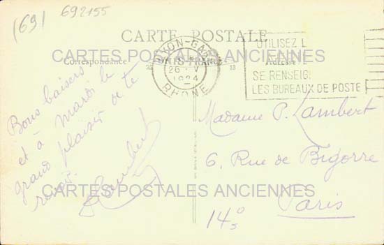 Etat : B Carte postale ancienne Rhone Lyon 3eme