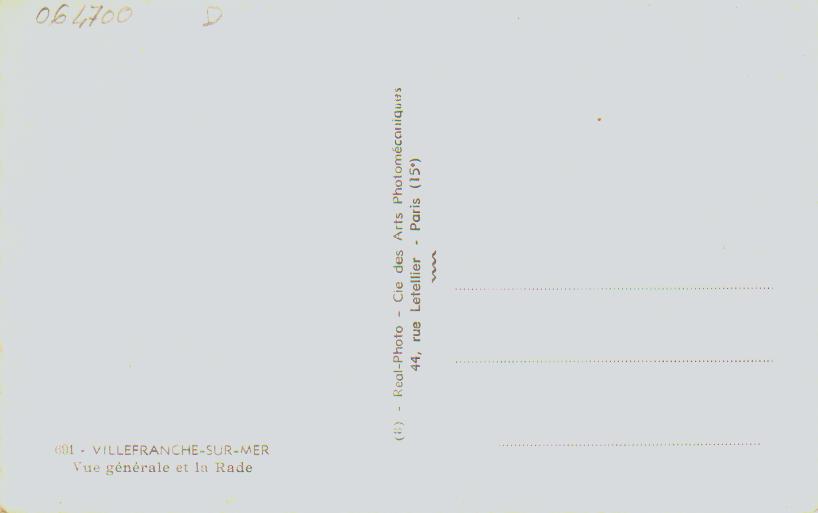 Cartes postales anciennes France Provence Alpes Cote d'Azur Alpes Maritimes Villefranche Sur Mer La Rade