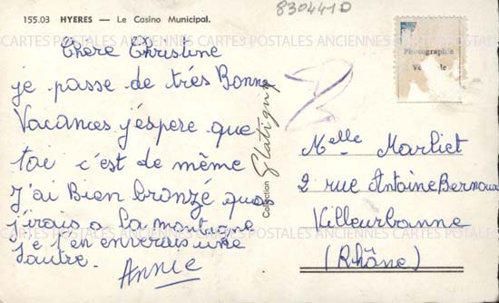Cartes postales anciennes France Provence Alpes Cote d'Azur Var Hyeres Le Casino Municipal