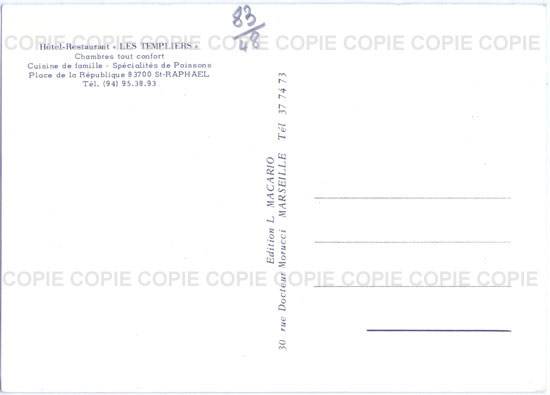 Cartes postales anciennes France Provence Alpes Cote d'Azur Var Saint Raphael Hotel Restaurant des Templiers